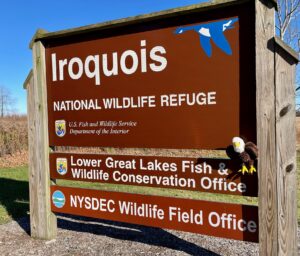 The entrance sign at the Iroquois National Wildlife Refuge visitor center.